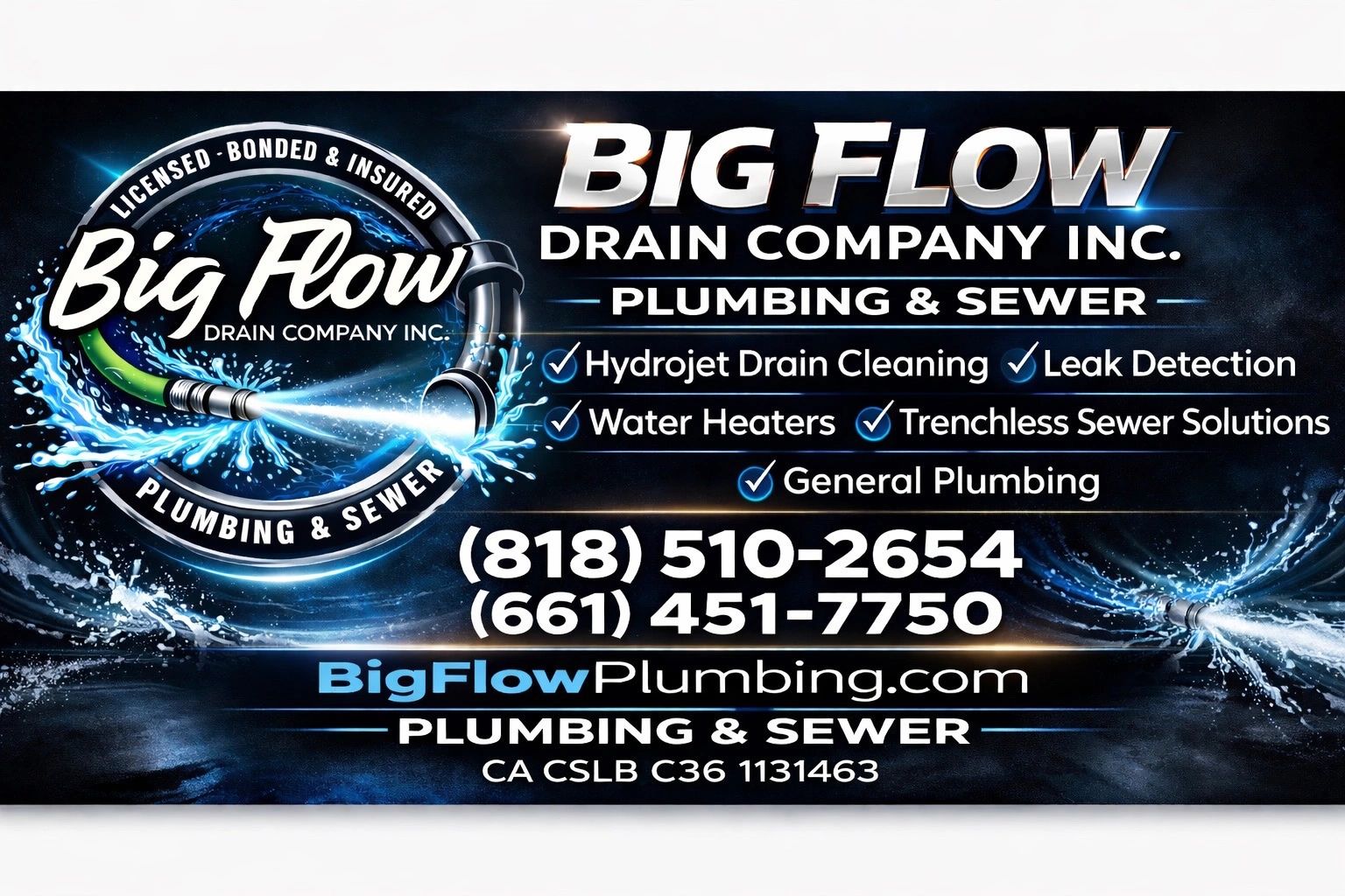 At Big Flow Drain Co. , we offer a wide range of plumbing services to meet the needs of our customers. Whether you need a simple repair or a complete plumbing system cleaning, our team has the expertise to get the job done right.